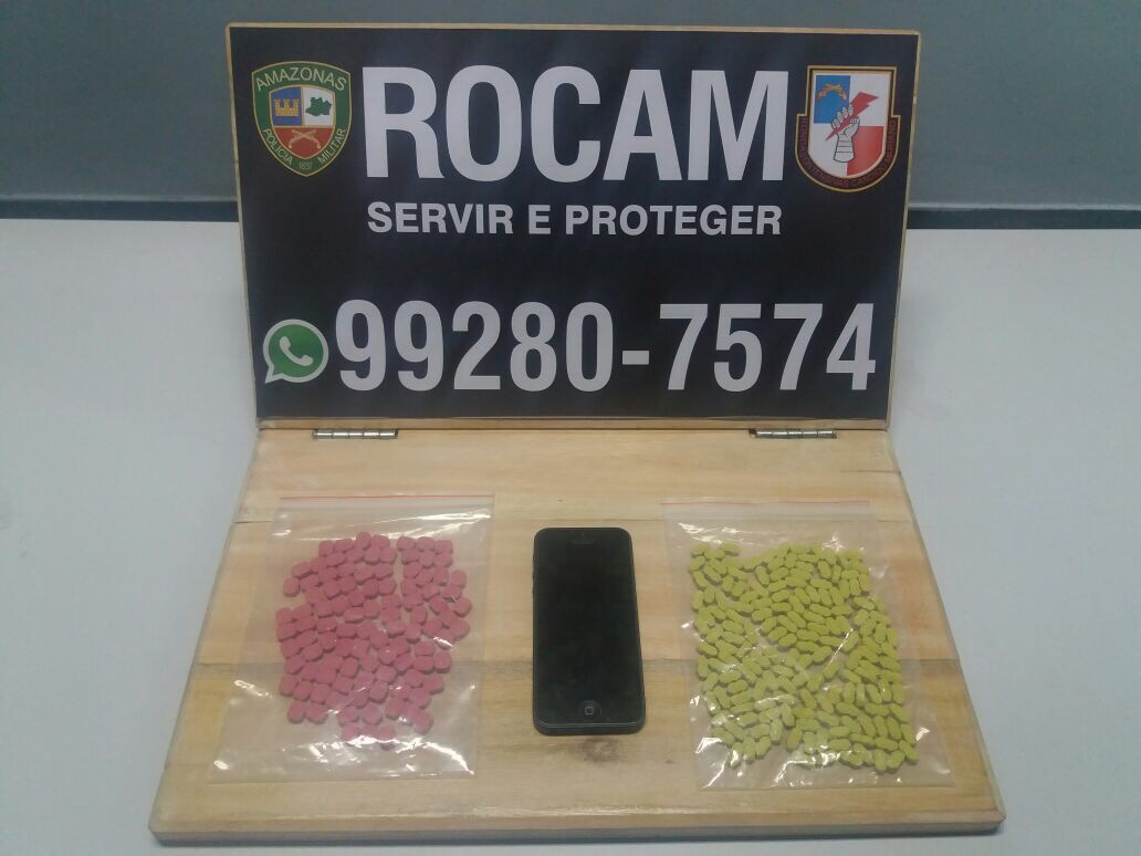 De imediato a equipe foi ao local e visualizou o veículo e, com rapidez, realizou a abordagem e a revista. Foram encontrados 150 comprimidos supostamente de êxtase, após diligências na residência do infrator, no bairro Compensa (zona oeste de Manaus), foram encontrados 100 comprimidos da mesma substância.