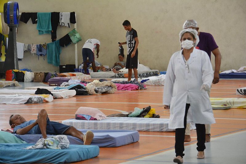 Ao menos 118 pessoas em situação de rua estão sendo atendidas em um abrigo provisório montado no Centro Educacional de Tempo Integral (Ceti) Áurea Pinheiro Braga, na Compensa, zona Oeste, e assistidas por uma equipe multidisciplinar da Prefeitura de Manaus, integradas por agentes das secretarias municipais da Mulher, Assistência Social e Cidadania (Semasc), e de Saúde (Semsa). No local, são oferecidas três refeições diárias aos abrigados além de higienização e acomodação, como forma de minimizar os efeitos da Covid-19, causada pelo novo coronavírus.