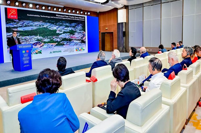 Na ocasião, o coordenador-geral de Comércio Exterior e Assuntos Internacionais, da Suframa, Arthur de Freitas Lisboa, apresentou os marcos regulatórios de incentivos extrafiscais administrados pela Autarquia, destacando os atrativos da região para investidores chineses, como a segurança jurídica, a sustentabilidade do projeto Zona Franca de Manaus, os principais segmentos de indústria e os indicadores socioeconômicos do Polo Industrial de Manaus (PIM), além de destacar as potencialidades dos Estados da Amazônia Ocidental e das Áreas de Livre Comércio administradas pela Suframa.