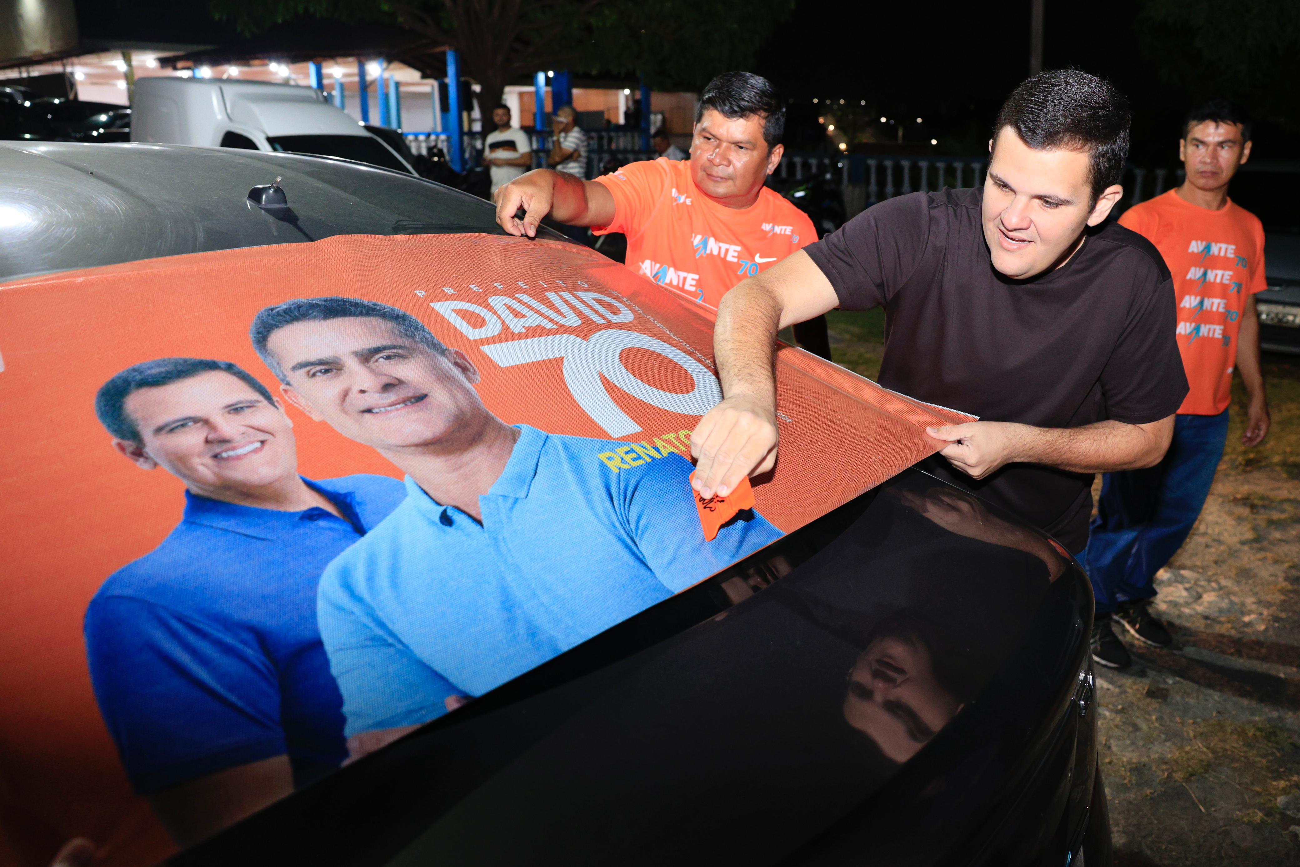 A campanha à reeleição do prefeito de Manaus, David Almeida, foi inaugurada com um adesivaço que atraiu uma multidão de pessoas, com a presença de apoiadores e candidatos a vereador pela Coligação, na madrugada de sexta-feira (16/8).