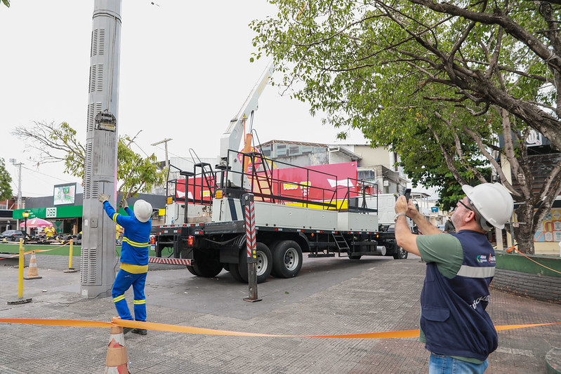 “À medida em que são identificadas as necessidades de realizar os serviços de manutenção corretiva, a concessionária Manaus Luz é acionada para executar os trabalhos. Em alguns lugares, foi necessário acionar veículos de maior porte devido à altura dos postes, como foi o caso da praça do Caranguejo, onde a empresa precisou deslocar caminhões para atuar na substituição das luminárias de LED”, explicou Everaldo Leal, diretor de Gestão Energética e Iluminação Pública da Ageman.
