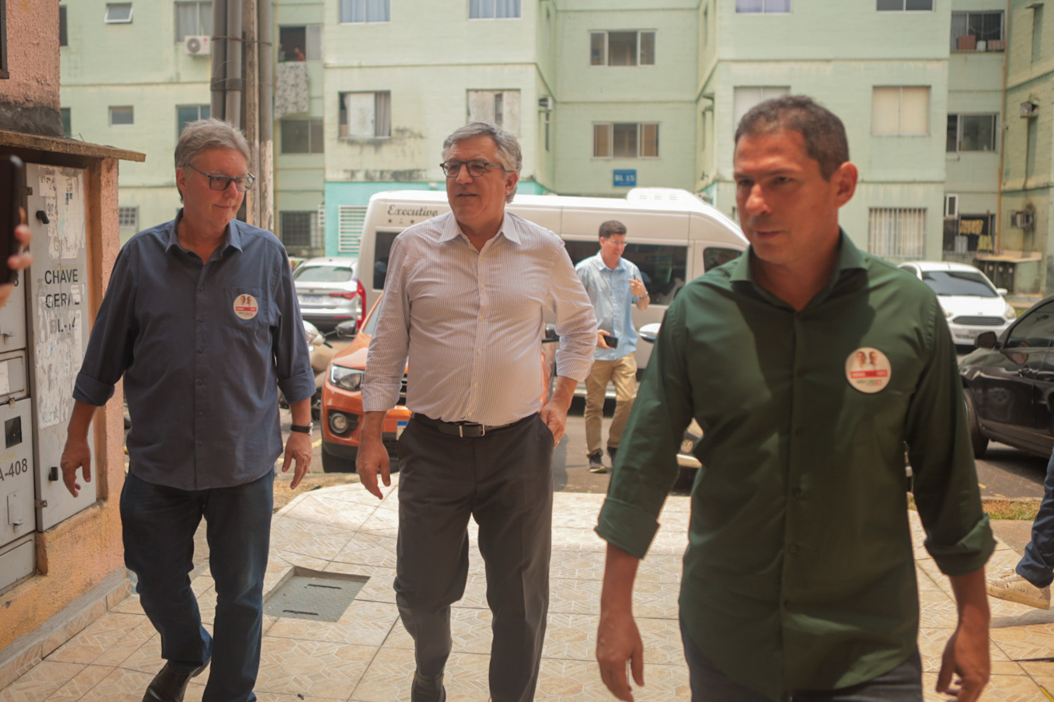 O ministro de Relações Institucionais e o candidato a prefeito, acompanhado do vice, estiveram no Residencial Ozias Monteiro I