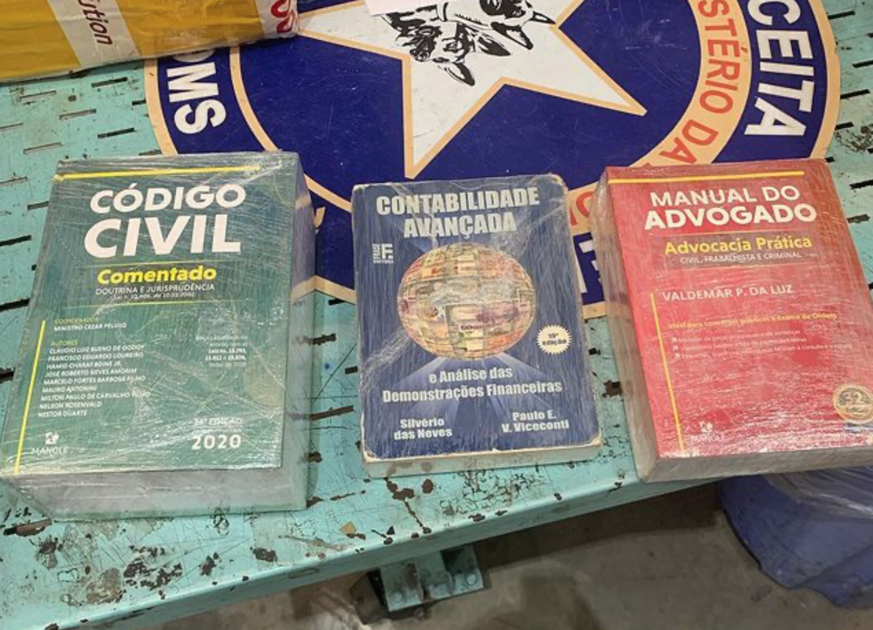 Na tentativa de enganar a fiscalização, a droga foi escondida dentro de livros do Código Civil, Manual do Advogado e Contabilidade Avançada, mas a ação foi frustrada pelo agente canino Odin.