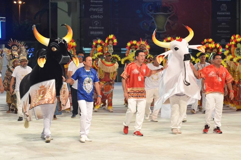 A homenagem aconteceu na arena do Bumbódromo, antes do início da disputa. Em reconhecimento à importância do palco onde se desenvolve o maior espetáculo de cultura popular a céu aberto os dois Bumbás, acompanhados de dirigentes, integrantes da Batucada do garantido e da Marujada de Guerra do Caprichoso e alguns artistas das duas agremiações, além antigos protagonistas da festa parintinense, como o ex-apresentador do Boi caprichoso, Arlindo Júnior, o pop da Selva, e Chico da silva, consagrado compositor da Baixa de São José, que já tem suas criações nos dois grupos folclóricos.