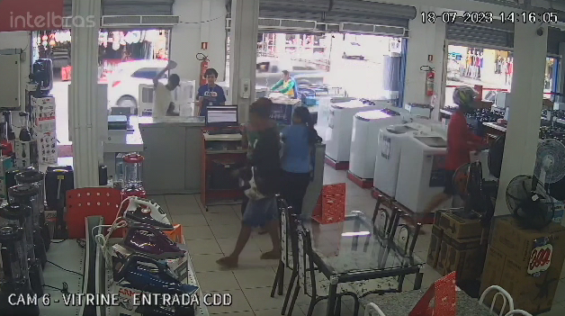 No local, estavam três funcionárias e uma cliente. s pessoas que passavam do lado de fora e tentaram entrar na loja fugiram assim que perceberam que se tratava de um assalto. Assustada, uma das funcionárias chega a abraçar uma cliente para tentar se proteger dos criminosos. As câmeras de segurança na parte externa do estabelecimento mostra quando os assaltantes fogem do local.
