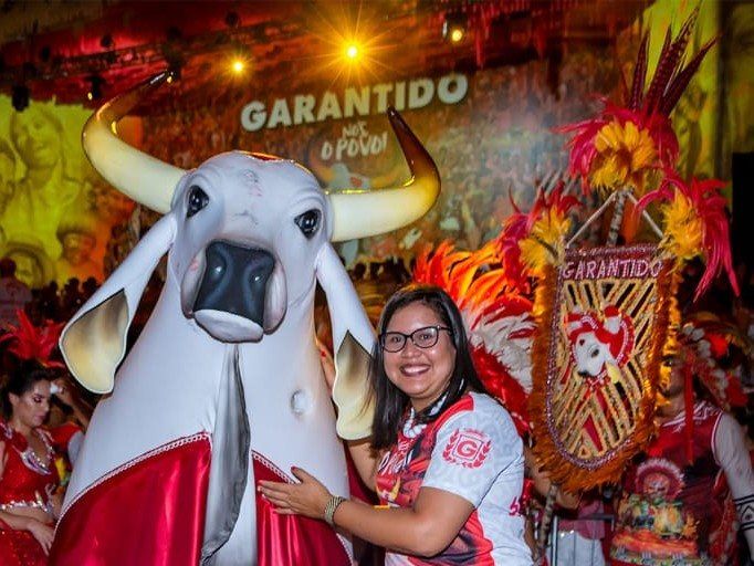Suzan Monteverde, bisneta do fundador do boi-bumbá Garantido, Lindolfo Monteverde, é presidente da Associação Regional Lindolfo Monteverde e titular da Comissão de Arte do Boi-Bumbá Garantido.