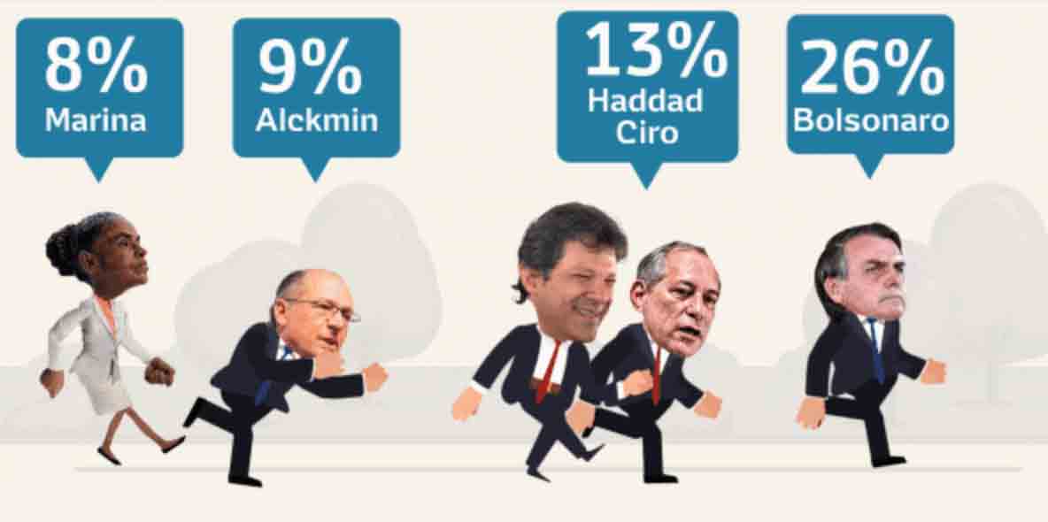 – Ciro 45% x 38% Bolsonaro (branco/nulo: 15%; não sabe: 2%)