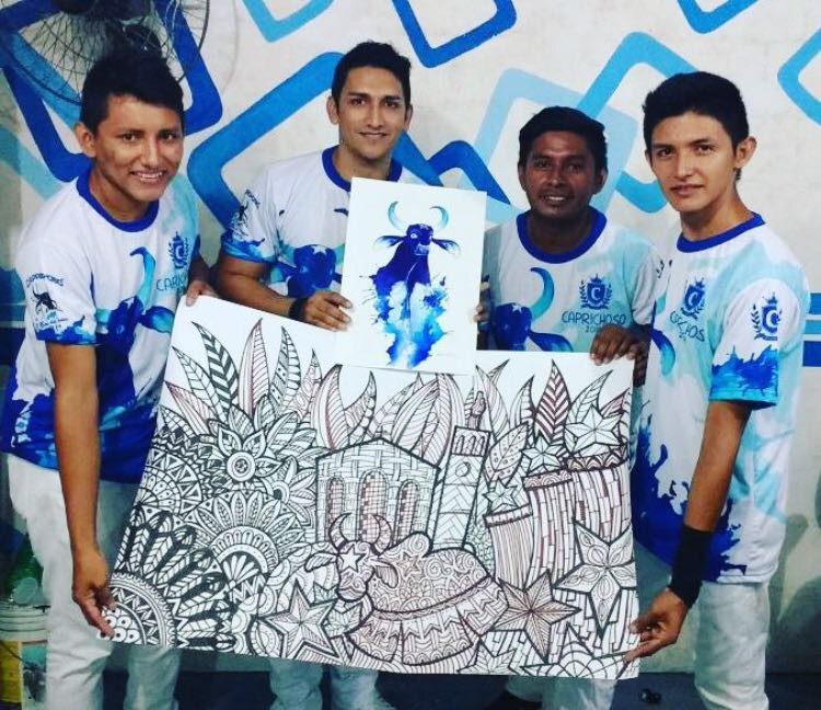 A equipe contou com a participação do ex-aluno da escola de artes, Pedro Farias Júnior, que reproduziu a imagem do Boi Caprichoso na técnica da aquarela em nuances da cor azul. O fundo da imagem foi feita na técnica chinesa zentangue, em marca d’água, que foi desenhada por ex-alunos Liceu de Artes e Ofícios Claúdio Santoro.