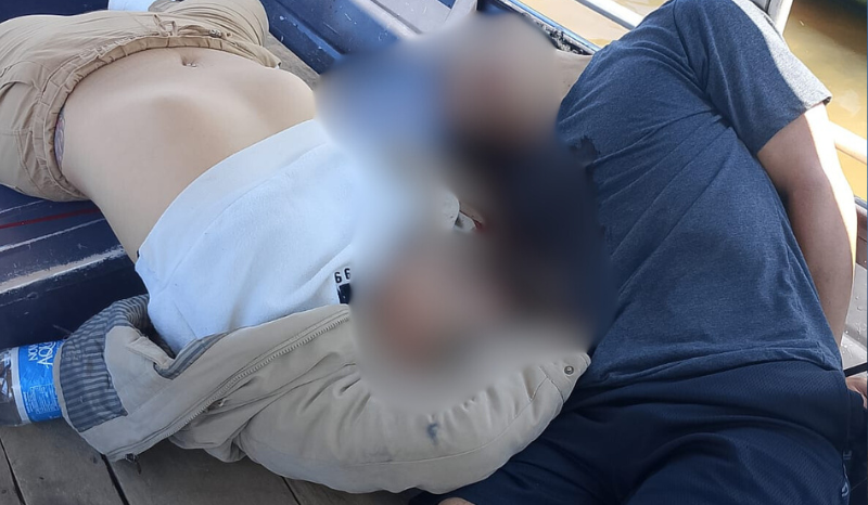 Os corpos foram encontrados dentro da embarcação, que estava à deriva. O homem estava com as mãos amarradas.