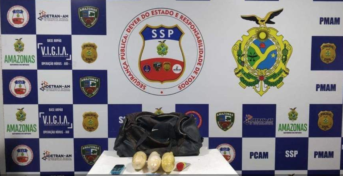 Com o suspeito, os policiais encontraram três invólucros de cocaína, avaliada em R$ 50 mil. A droga foi localizada em uma embarcação e estava escondida dentro de um freezer. O colombiano tinha em posse um desenho mapeando a rota do entorpecente desde Tabatinga até o destino final.