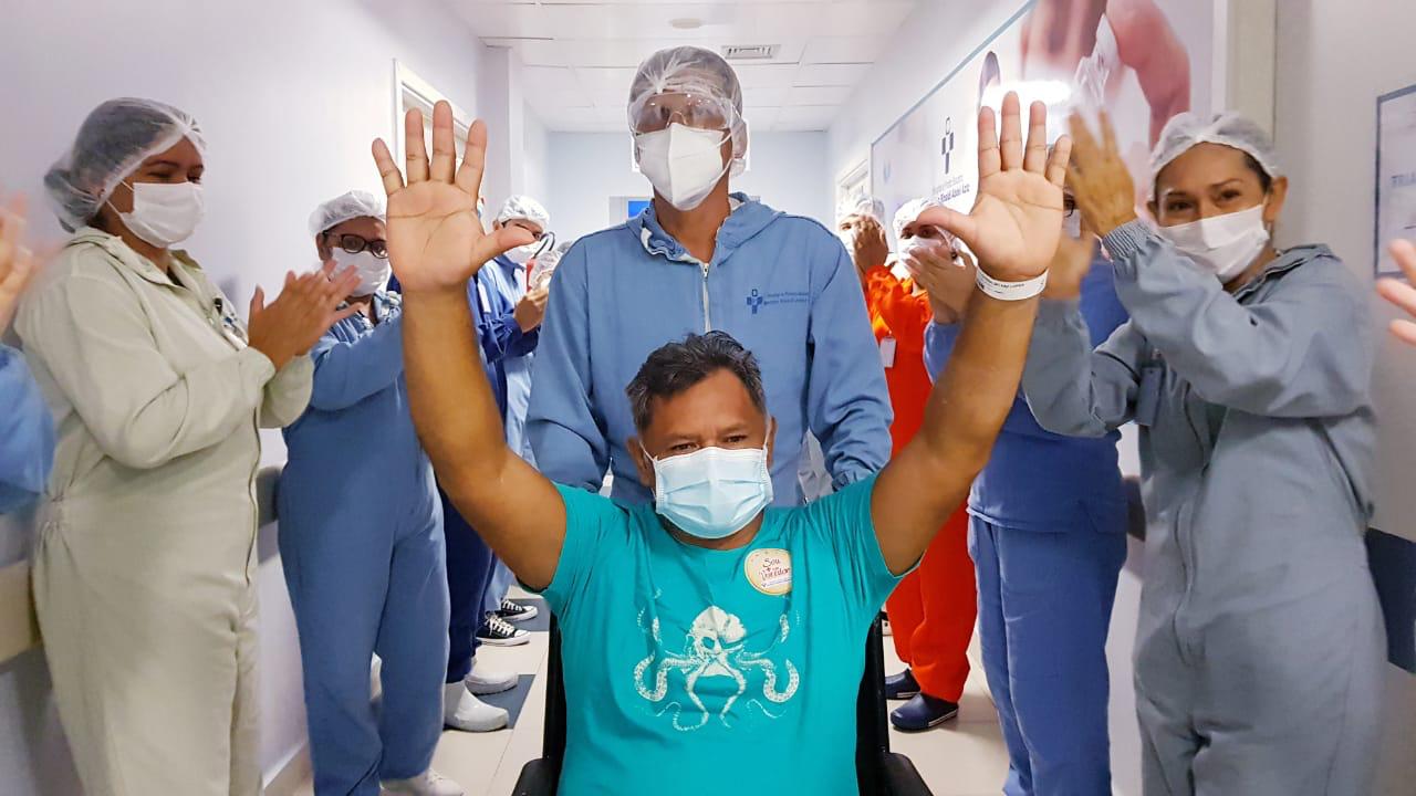 Cleusinaldo Lopes, de 48 anos, foi o primeiro paciente a receber alta na enfermaria de campanha do hospital Delphina Aziz. Lopes ficou oito dias internado no leito clínico do hospital, sendo transferido, na manhã de quinta-feira (27/01), para a enfermaria de campanha.