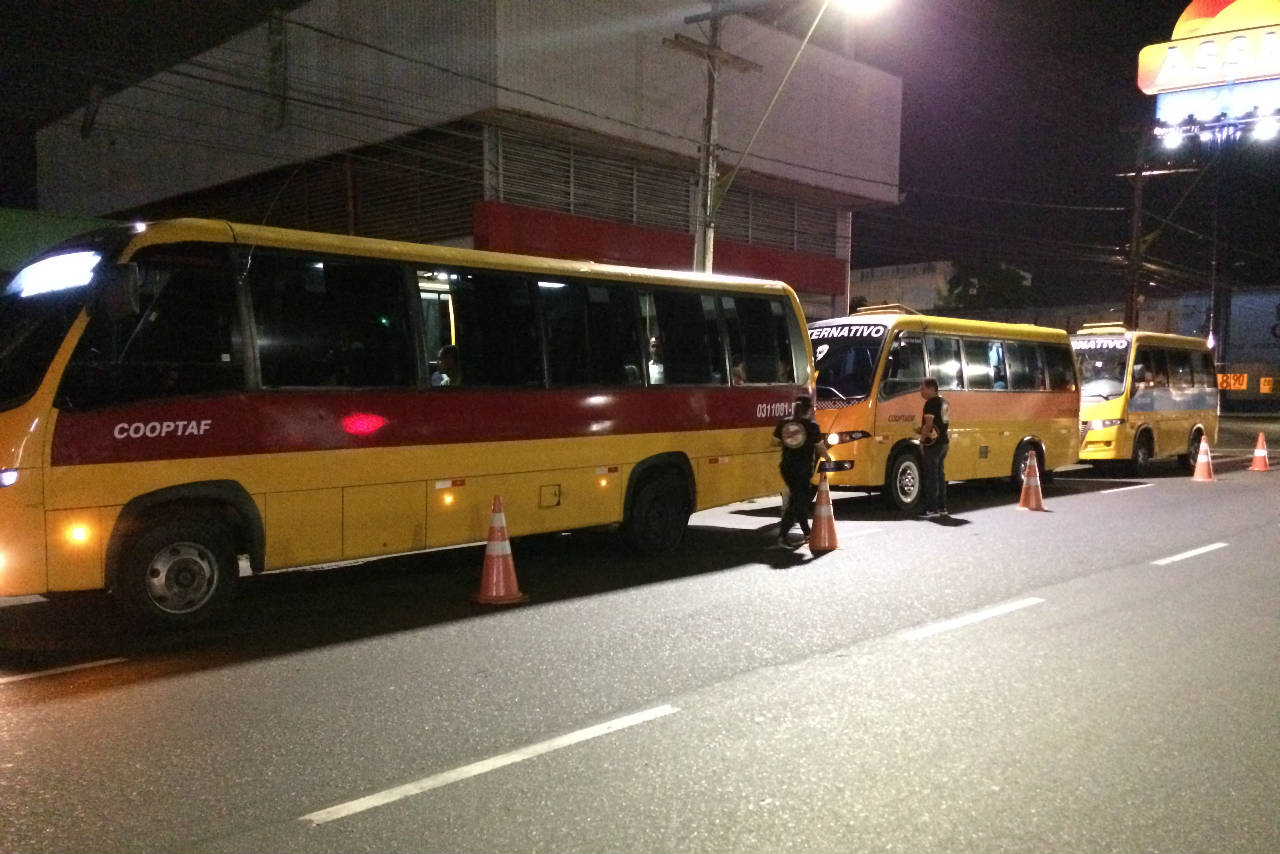 Na operação de fiscalização do transporte alternativo, os agentes do Detran-AM contaram com o apoio dos policiais do Batalhão de Trânsito da Polícia Militar.