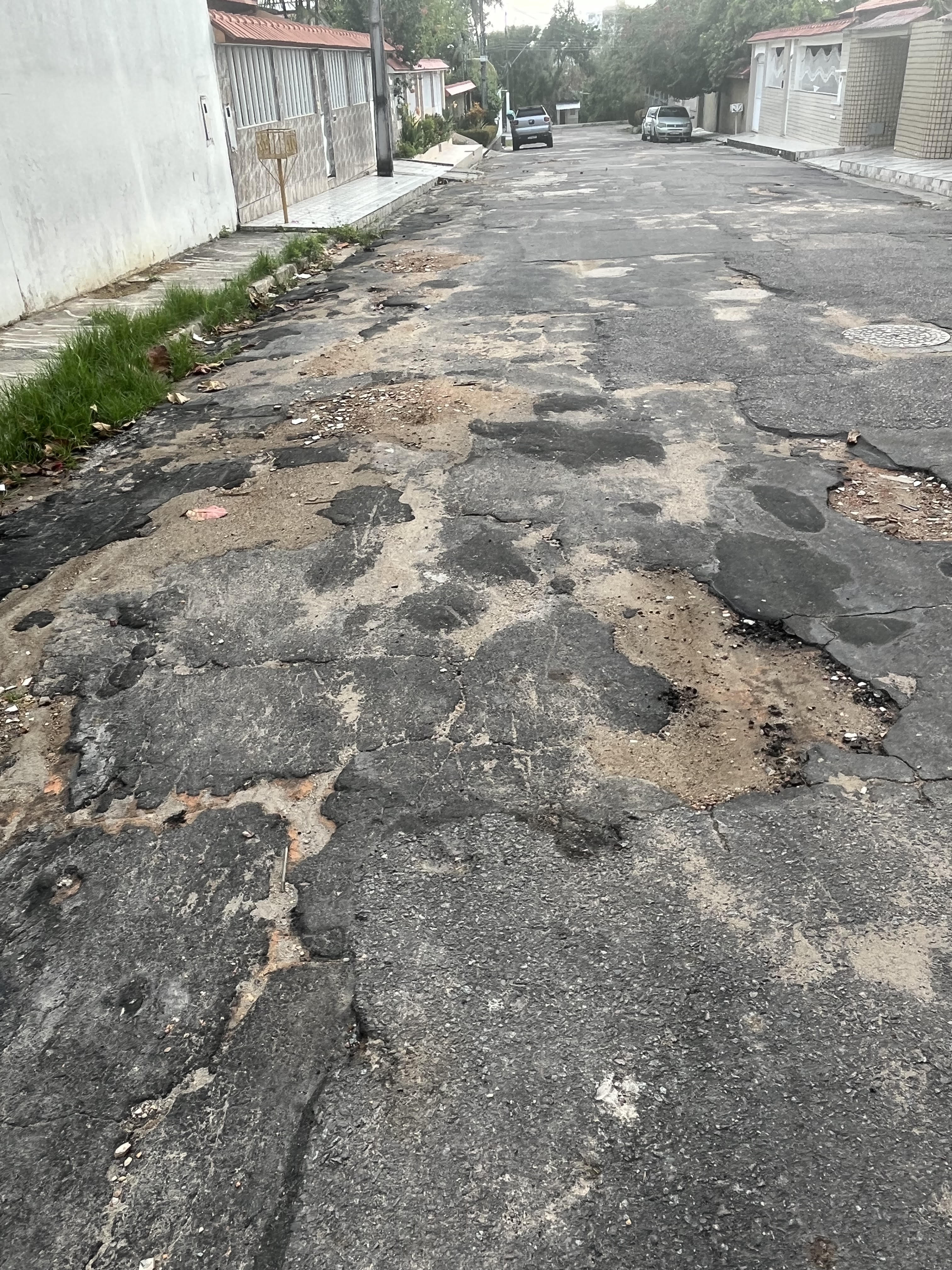 Trata-se, simplesmente, de uma das ruas do conjunto residencial Villar Câmara, no Aleixo. É tanto buraco que que o vestígio de asfalto — que um dia existiu por ali –, desapareceu quase que por completo.