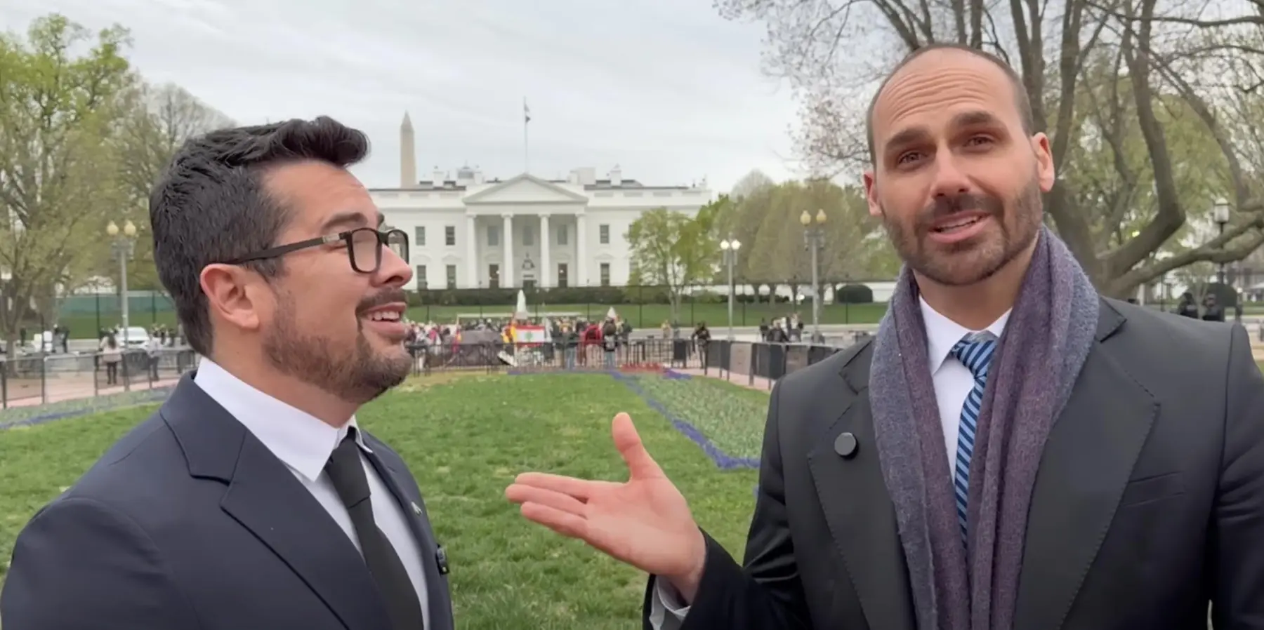 — Fazendo o que meu pai, Jair Bolsonaro, pediu: 'Leve esperança ao povo brasileiro! –, disfarçou.