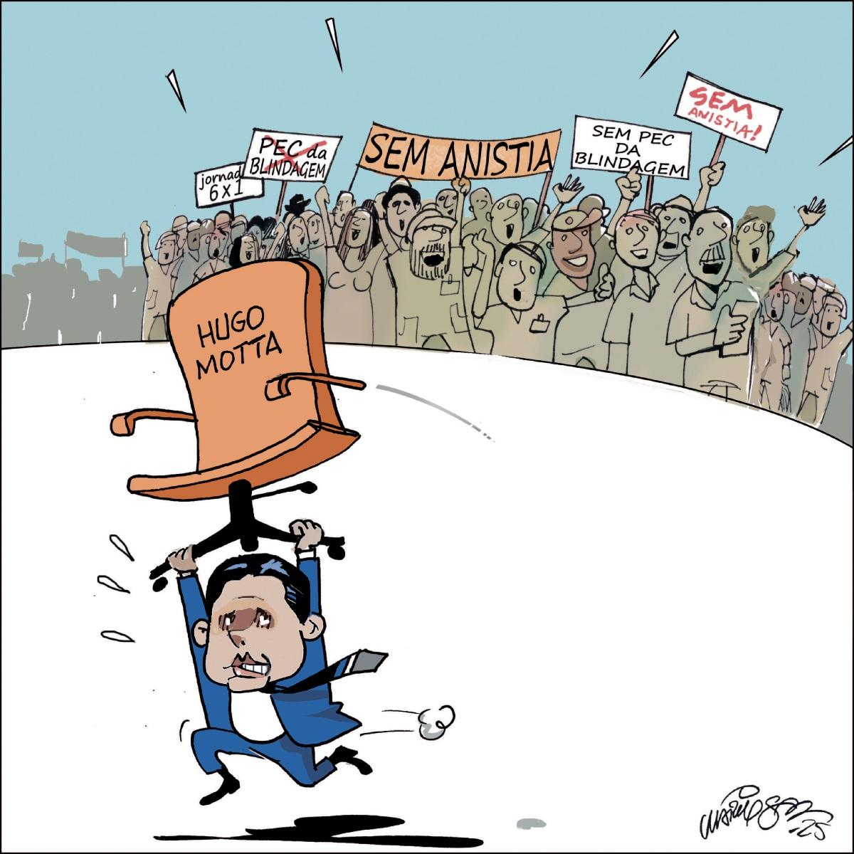 Por achar que o povo brasileiro tem o nariz furado ao contrário, Hugo Motta – hoje o político mais rejeitado do país –, esqueceu que, em agosto, um grupo de parlamentares bolsonaristas, usando mordaças, correntes para se atar às cadeiras da Mesa Diretora da Câmara, ocuparam por 48 horas a Mesa Diretora da Câmara.