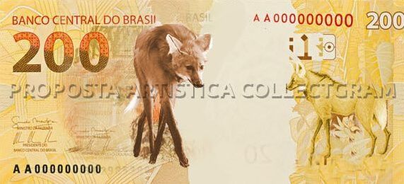 O Banco Central anunciou, nesta quarta-feira (29), que o Conselho Monetário Nacional (CMN) aprovou o lançamento da cédula de R$ 200. O animal escolhido para ilustrá-la é o lobo-guará. Em 2001, o Banco Central conduziu uma pesquisa junto à população tendo como base uma lista de animais da fauna brasileira em extinção. Perguntou aos cidadão quais espécimes da fauna eles gostariam de ver representados no dinheiro brasileiro.