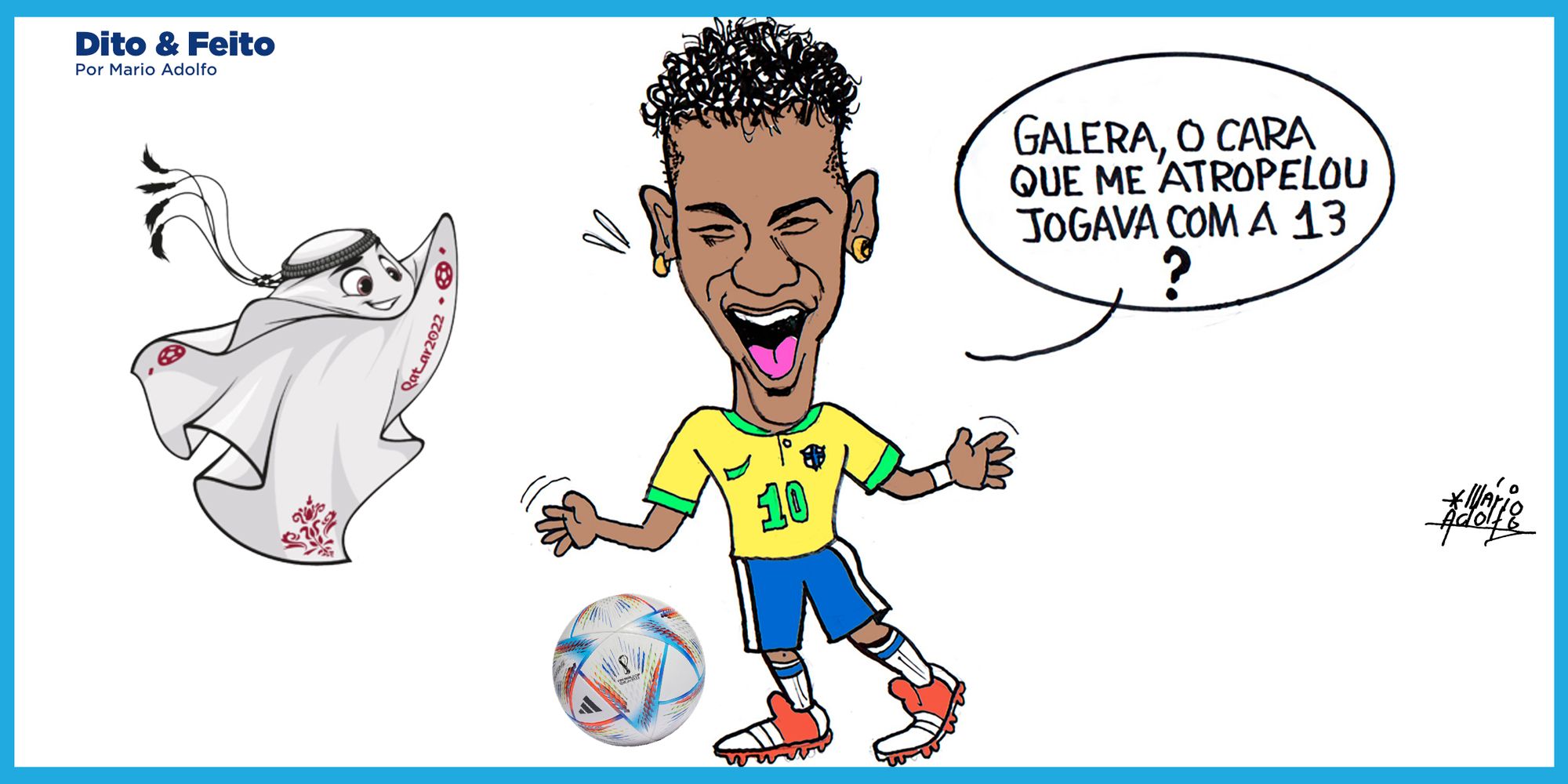 Senão vejamos: O Brasil sediou o Mundial de 2014 sob o comando de Luiz Felipe Scolari, o técnico do penta em 2002. Tudo estava desenhado para que aquele fosse a Copa do 'Ney', que brilhou no título da Copa das Confederações em 2013. Então no Barcelona, ao lado do amigo Lionel Messi, o atacante brasileiro se destacou na fase de grupos marcando quatro gols. Mas nas quartas de final, contra a Colômbia, a magia se apagou e não por sua culpa. O lateral colombiano Camilo Zúñiga o acertou com uma joelhada nas costas e o tirou da reta final da partida. Neymar deixou o gramado do Castelão, em Fortaleza, chorando de dor. O diagnóstico? Fratura na vértebra e adeus ao Mundial. A Seleção venceu a Colômbia por 2 a 1 e foi para as semifinais, em que sofreu diante da Alemanha o histórico 7 a 1.