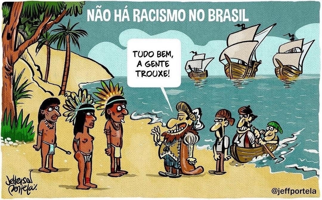 A discriminação contra os povos indígenas no Brasil é um problema histórico e persistente, manifestando-se de diversas formas, incluindo preconceito social, desigualdade no acesso a direitos básicos, apropriação cultural sem reconhecimento e violência física e institucional. Mas até hoje tem gente dizendo que “ isso não existe”. Existe uma percepção comum e estereotipada de que o indígena "autêntico" deve viver isolado em uma aldeia, usando roupas tradicionais e arco e flecha. Quando um indígena frequenta a universidade, usa celular ou vive em um centro urbano, ele frequentemente enfrenta questionamentos sobre sua identidade e sofre preconceito por não se encaixar nesses padrões fantasiosos.