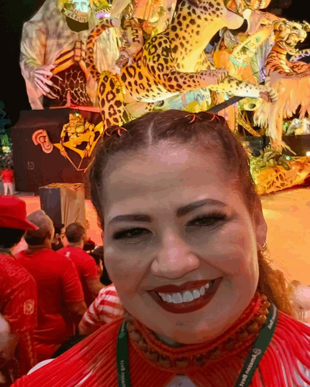 Djane Senna é artista de figurino e figurinista conhecida por sua atuação no Boi Garantido, especialmente nos vestidos da Sinhazinha da Fazenda nos Festivais de Parintins de 2022 e 2023