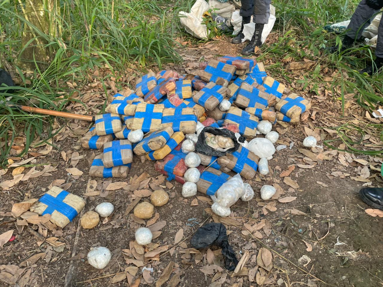 “Quando chegamos lá, em uma área de mata, tinha um grupo de criminosos armados, que fugiram assim que viram a gente. As drogas estavam dentro de barris, enterrados, e tivemos dificuldades para removê-las”, informou o policial.