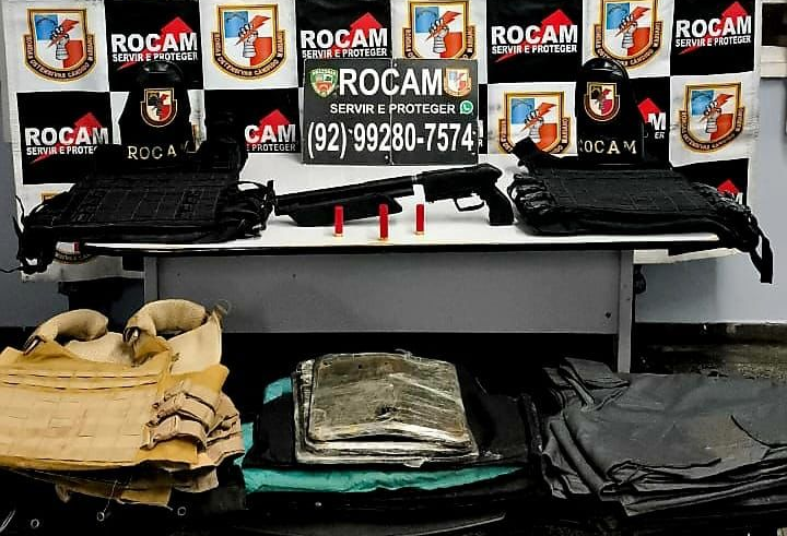 Em outra ação, os policiais da Rocam, apreenderam diversos coletes balísticos, no bairro Colônia Terra Nova, na madrugada de domingo. Os agentes receberam informações de que na rua Salomão, um homem estaria com uma arma de fogo em via pública. Ao chegarem no local, o infrator empreendeu fuga por uma área de mata.