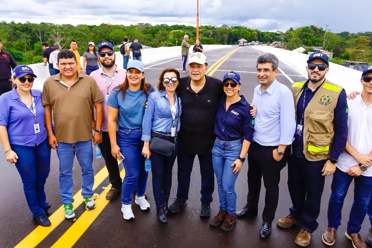 Eduardo Braga — Ele vem no dia 11. Vai passar praticamente o dia todo na BR-319, numa agenda inaugurando obras como essas pontes, lançando obras como a ponte do Igapó-Açu, presenciando o asfalto cair no Trecho C. Logo a seguir, ele vai se deslocar para o Minha Casa, Minha Vida, onde vai entregar as primeiras 576 unidades que foram construídas no governo dele, em parceria com a Prefeitura Municipal de Manaus. E, no dia seguinte, ele vai visitar o estaleiro Bertolini, onde há um contrato da Petrobras para a fabricação de barcaças, no valor de quase 3 bilhões de reais.