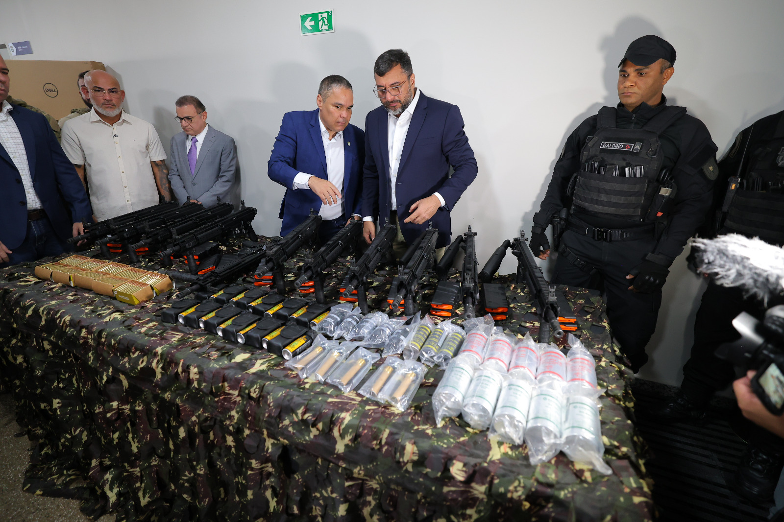 “Nós estamos entregando fuzis que a polícia do Amazonas nunca teve, é a primeira vez, isso é inédito e não tem outro jeito. Tem que ser armamento pesado para enfrentar grupos criminosos que descem da fronteira, da Colômbia, do Peru. Nós temos um time que tem dado um resultado muito significativo na segurança pública como nunca antes no estado”, afirmou Wilson Lima.