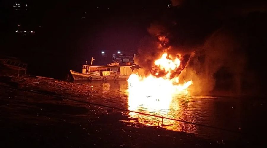 Uma equipe do Corpo de Bombeiros foi acionada para controlar o fogo. De acordo com a corporação, o barco de madeira estava carregado com mais de 30 botijões de gás e cinco tanques cheios de combustíveis.