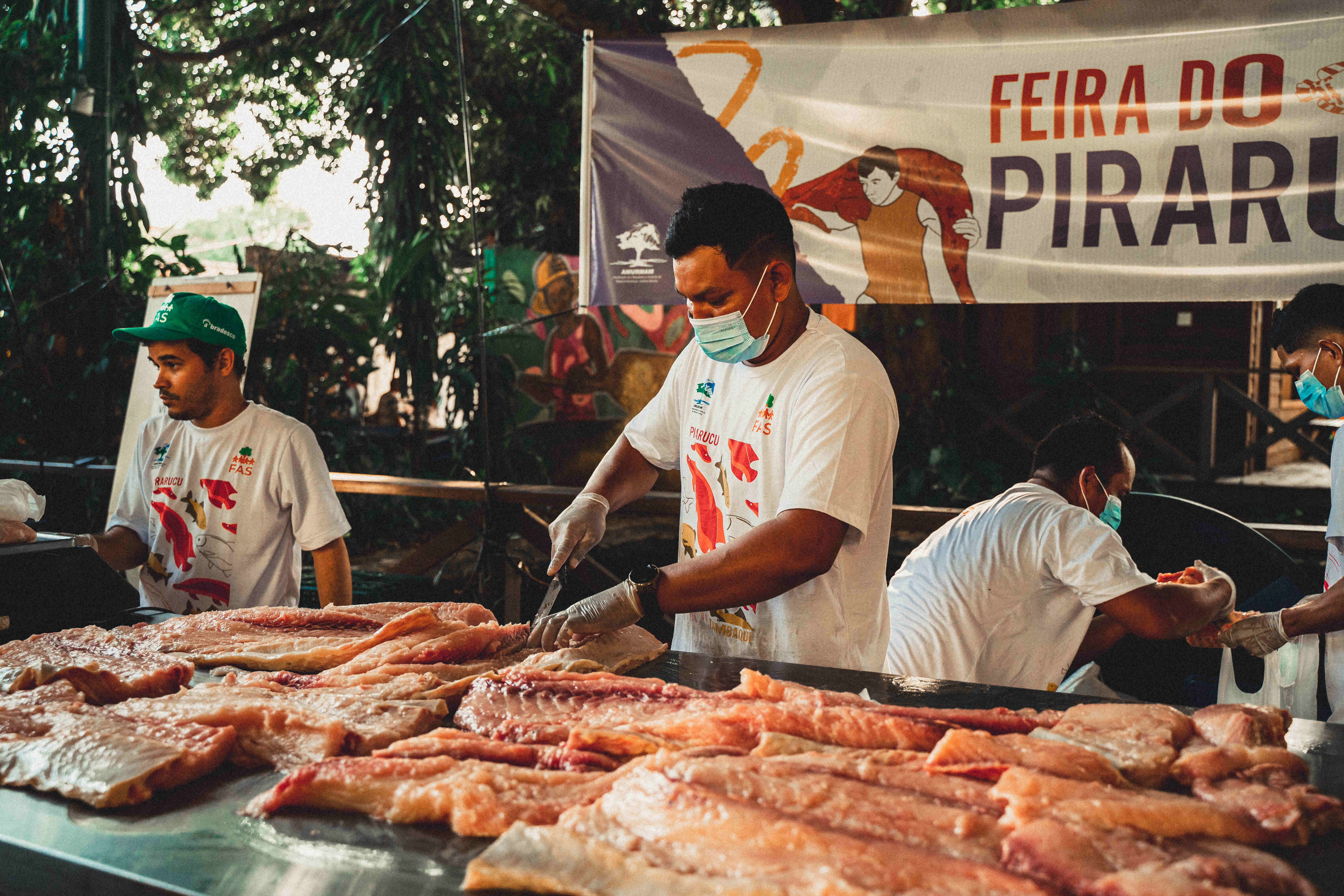 A feira é uma das ações do projeto Cadeia Produtiva do Pirarucu Manejado 2024, parceria da FAS com o Bradesco que tem por objetivo fortalecer a cadeia produtiva do pirarucu, com infraestrutura produtiva e as etapas do manejo legal em unidades de conservação onde a instituição atua.