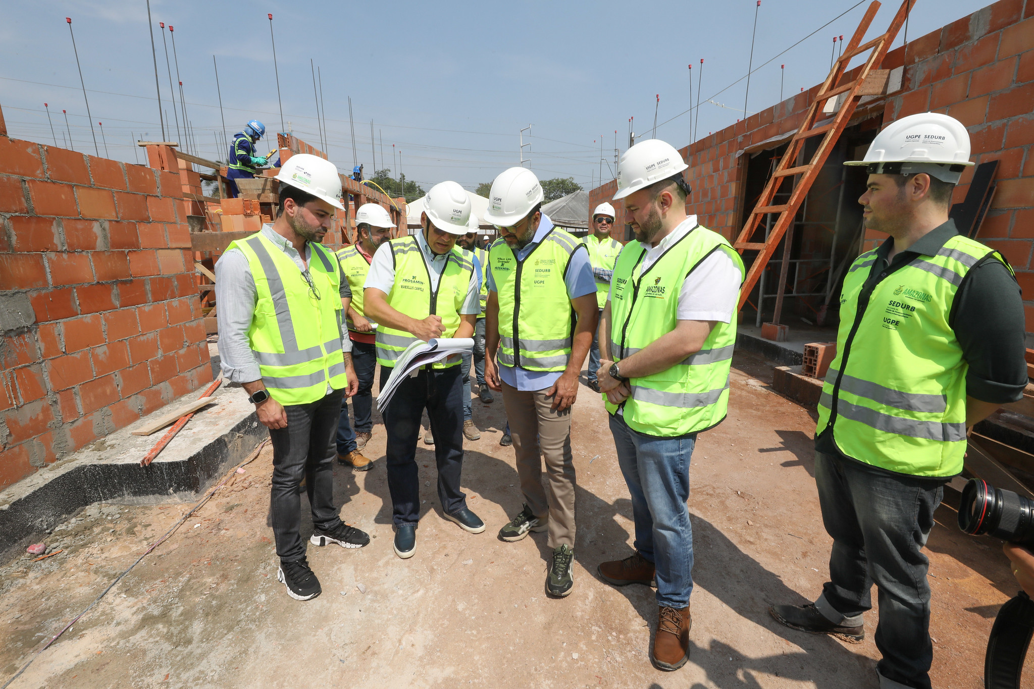 O governador Wilson Lima realizou, nesta quarta-feira (25/09), uma nova vistoria no conjunto habitacional em construção na comunidade da Sharp, zona leste de Manaus. O empreendimento, que receberá 176 famílias que viviam em áreas de risco, é um dos complexos construídos pelo Programa Social e Ambiental de Manaus e Interior (Prosamin+), que fazem parte do Amazonas Meu Lar. No total, a previsão é de que o programa entregue cerca de 130 unidades habitacionais até o fim do ano.