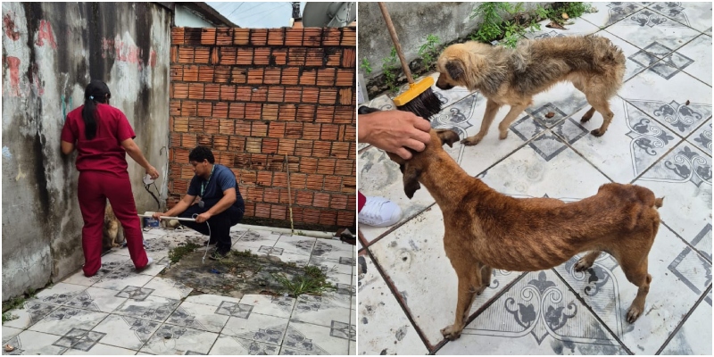 “A equipe chegou ao local com um perito veterinário, que constatou os maus-tratos. Um deles estava amarrado a um fio elétrico curto e outro tinha sido deixado na rua. Ambos viviam sob sol e chuva, e de acordo com o tutor, os animais eram alimentados com restos de comida”, disse.