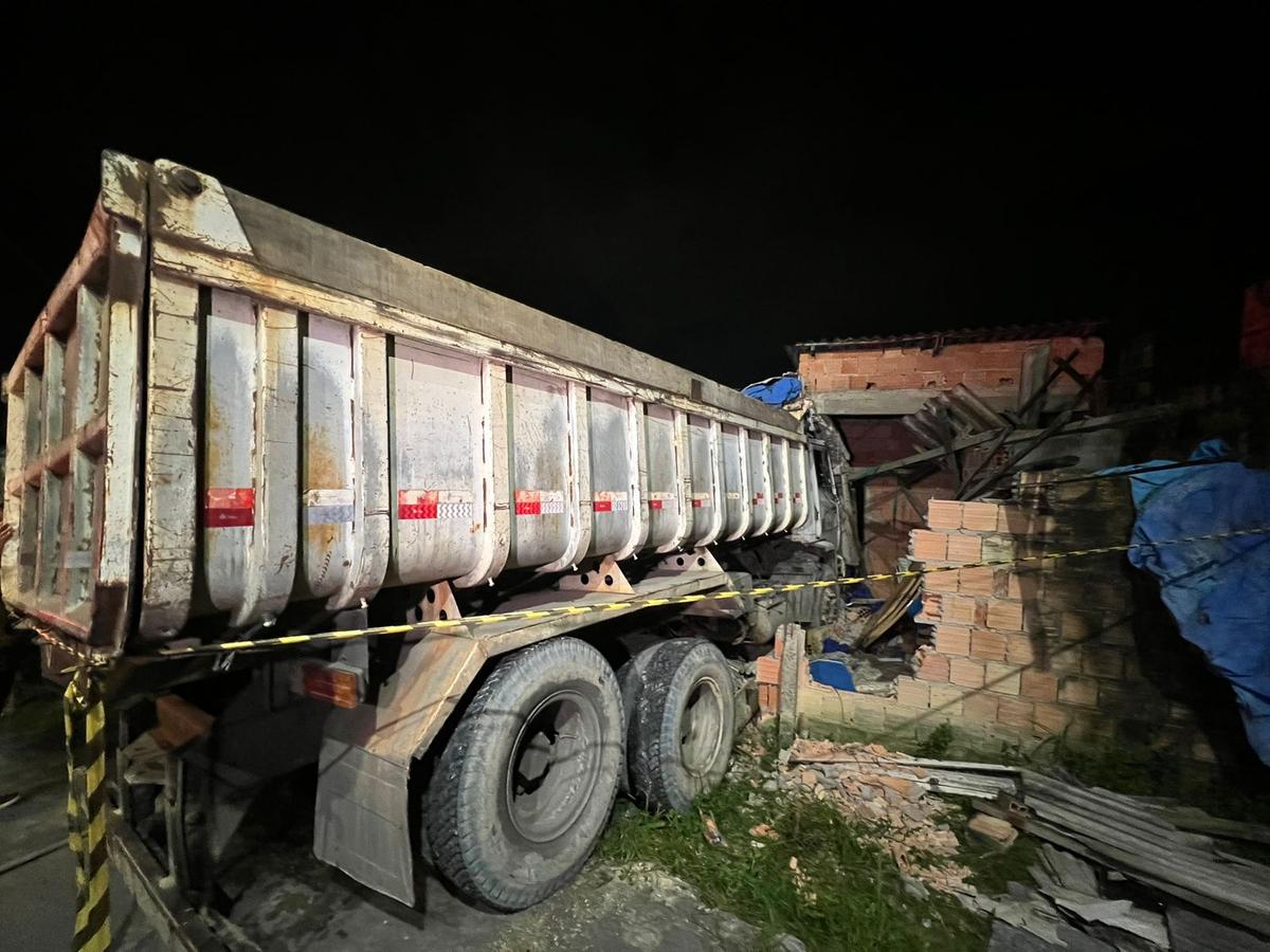 Uma caçamba invadiu uma residência na rua Crisciúma, no bairro Cidade de Deus, na zona norte de Manaus, na noite desta segunda-feira (20). Marcelo Silva dos Santos, 37, que ocupava o veículo, morreu.