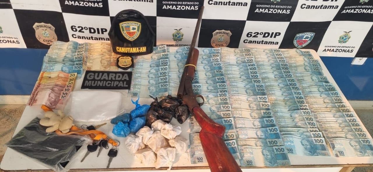 Polícia Civil do Amazonas (PC-AM), por meio da 62ª Delegacia Interativa de Polícia (DIP) de Canutama (a 619 quilômetros de Manaus), com o apoio da Polícia Militar do Amazonas (PMAM) e Guarda Civil Municipal (GCM), prendeu em flagrante, na quarta-feira (14/08), os irmãos Lucas Santos da Silva e Jaqueline Santos da Silva, 28, por tráfico de drogas e associação para o tráfico. O marido de Jaqueline, Marcos Felipe de Oliveira Lima, 30, também foi preso.