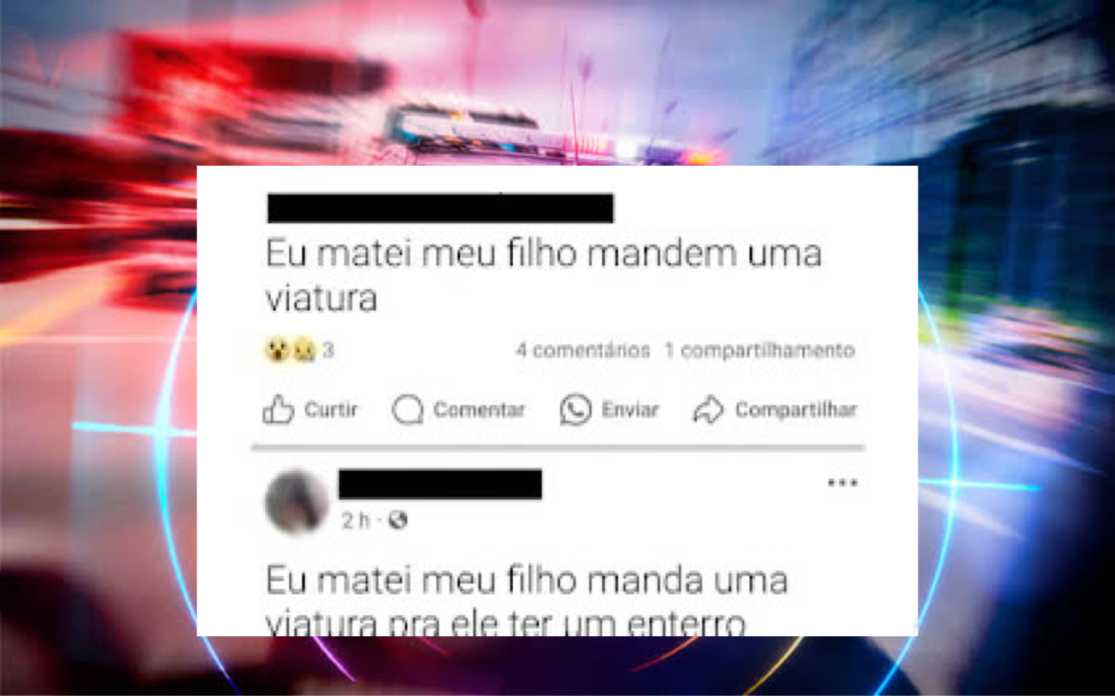 "Eu matei meu filho, mandem uma viatura para ele ter um enterro digno", escreveu no post.