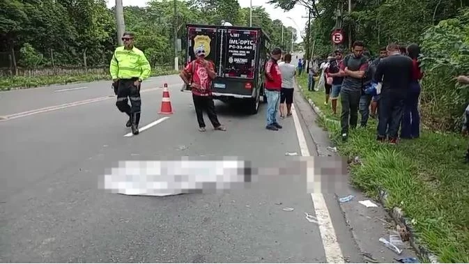 A auxiliar de produção Elizângela Holanda Costa, 38, morreu após um acidente de trânsito, na manhã desta sexta-feira (29), na Avenida Santos Dumont, próximo ao Aeroporto Internacional Eduardo Gomes, na zona Centro-Oeste de Manaus. O marido da vítima, André Alves dos Santos, também ficou ferido.