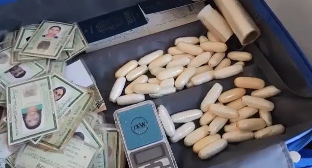 “Então, montamos a operação e conseguimos efetuar a prisão delas, ocasião em que encontramos diversas cápsulas de cocaína, balança de precisão e dezenas de documentos de identidade que seriam utilizadas para falsificação para o transporte de droga”, detalhou.