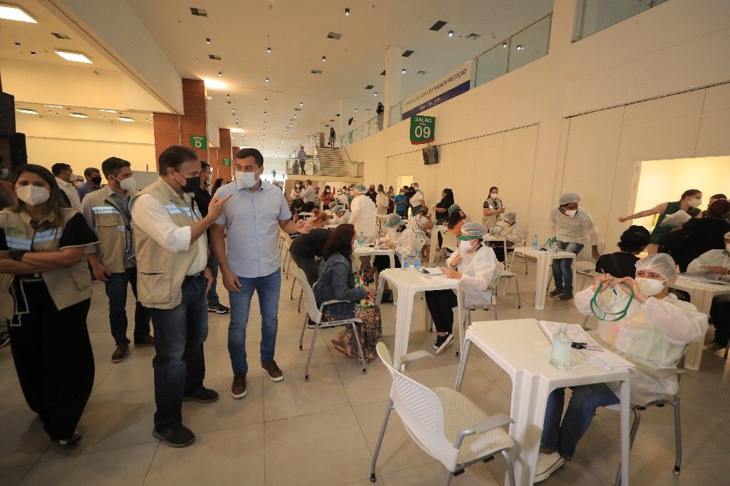 O governador do Amazonas, Wilson Lima, e o prefeito de Manaus, David Almeida, inauguraram, nesta quarta-feira (19/01), o novo Centro de Testagem contra a Covid-19. O serviço passa a ser oferecido nas etapas 1 e 2 do Centro de Convenções do Amazonas Vasco Vasques (CCAVV), espaço cedido pelo Governo do Amazonas e que vai ampliar a oferta de testes, com capacidade para atender 10 mil pessoas por dia.