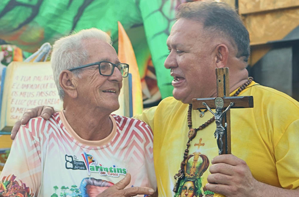 Um momento de pura emoção marcou o Festival Folclórico de Parintins quando dois verdadeiros magos da arte e da fé se reencontraram em frente à sala de imprensa do Bumbódromo. Jair Mendes e Juarez Lima, figuras icônicas do evento, uniram-se novamente, reunindo os trabalhadores dos bois Caprichoso e Garantido, bem como a presença de algumas personalidades dos bois.