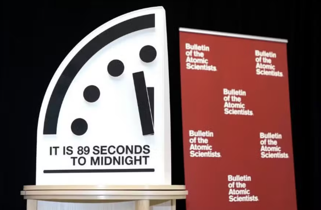 Isso é um segundo mais próximo do que foi definido no ano passado. A organização sem fins lucrativos sediada em Chicago criou o relógio em 1947, durante as tensões da Guerra Fria após a Segunda Guerra Mundial, para alertar as pessoas sobre a proximidade da destruição do mundo pela humanidade.