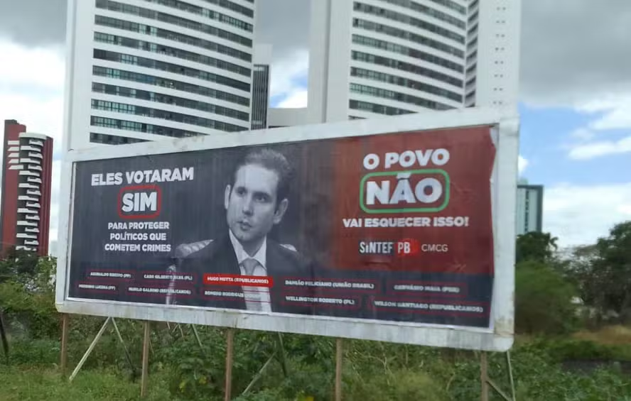 Dez outdoors com o rosto de Motta foram espalhados por Campina Grande, cidade natal do parlamentar. Ao entrar com a ação, a advocacia da Câmara alegou que a mensagem “eles votaram sim para proteger políticos que cometem crimes”, vinculada aos cartazes, era “difamatória e falsa”.