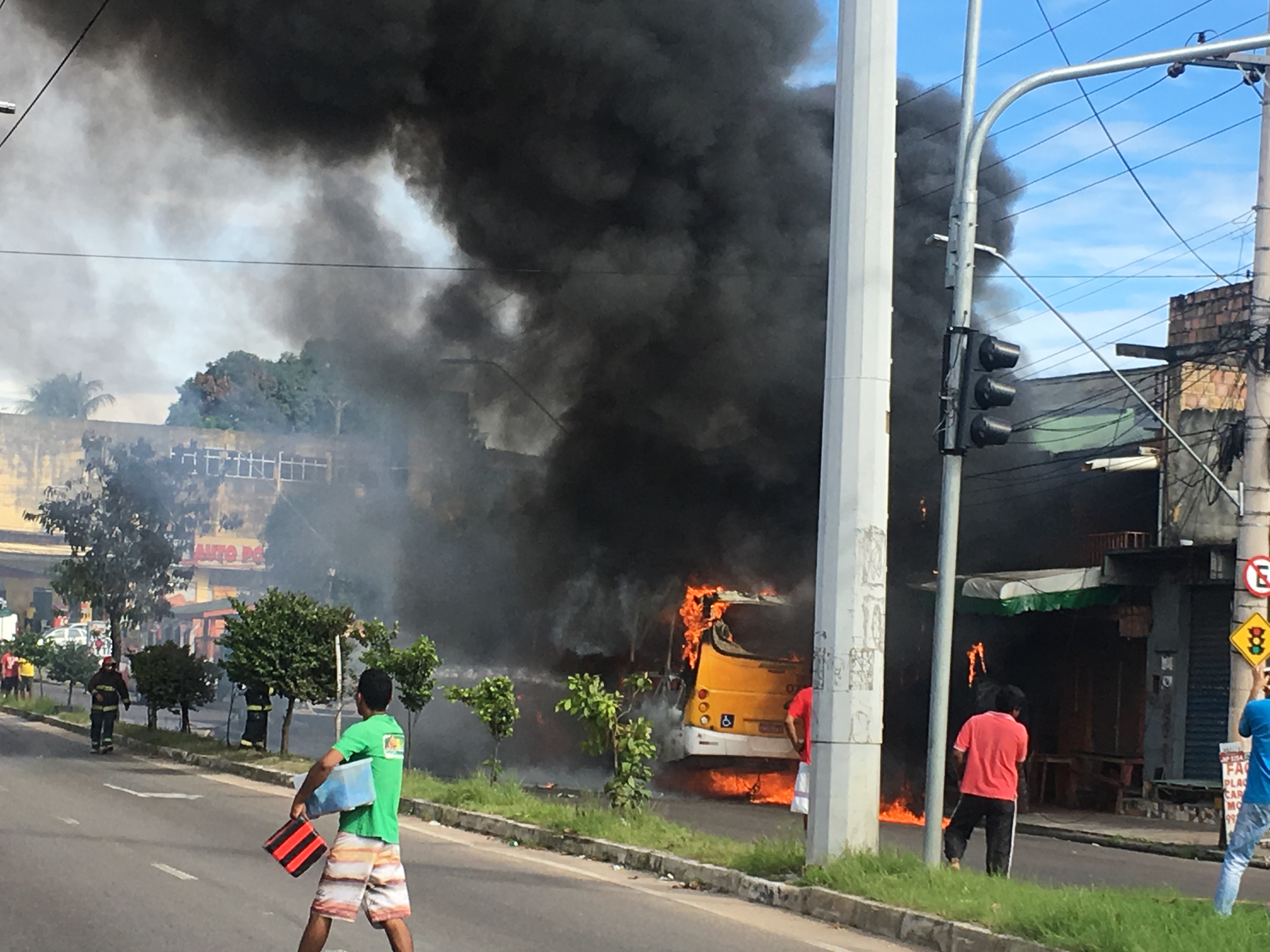 Um ônibus da linha 677, que pertence à empresa Global Green, pegou fogo na manhã desta quarta-feira (4), na avenida Silves, zona Sul. No momento do incêndio o ônibus estava com cerca de 100 passageiros.