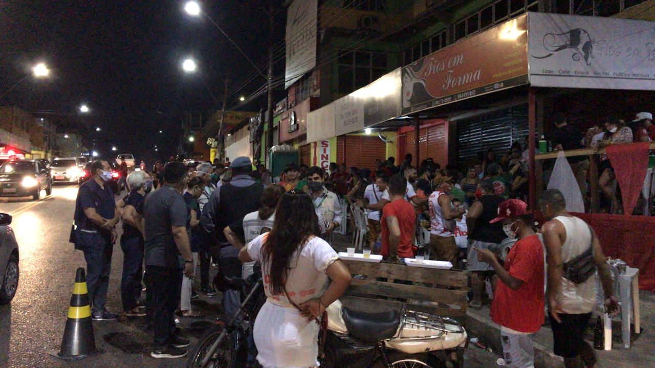 Entre os bares interditados, um localizado na avenida Dom Pedro foi fechado por estar com aglomeração, falta de licença e outras irregularidades, contrariando o decreto governamental.