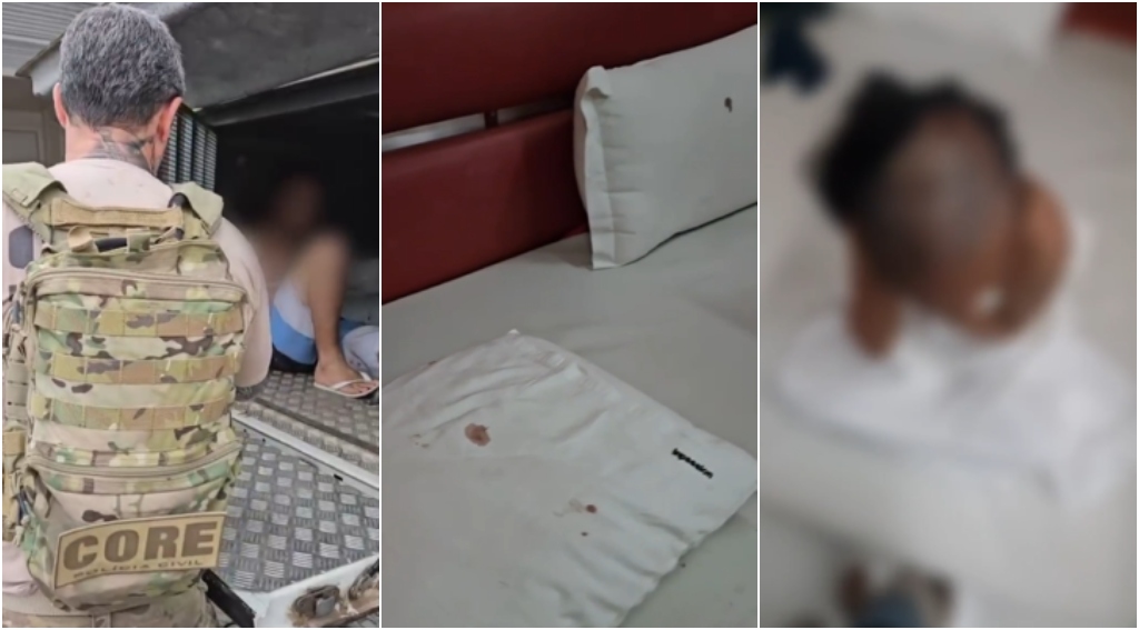 “Conseguimos adentrar o local. No momento, apesar de nos identificarmos como policiais, ele ainda esboçou reação durante a sua prisão; tivemos que mobilizá-lo. Cabe ressaltar que o local em que nós entramos era uma verdadeira cena de horror. No momento, ela estava na cama, desacordada. O quarto apresentava muito sangue, vômito e fezes, ou seja, ele permaneceu ali por mais de 24 horas espancando essa mulher”, complementou Juan Valério.