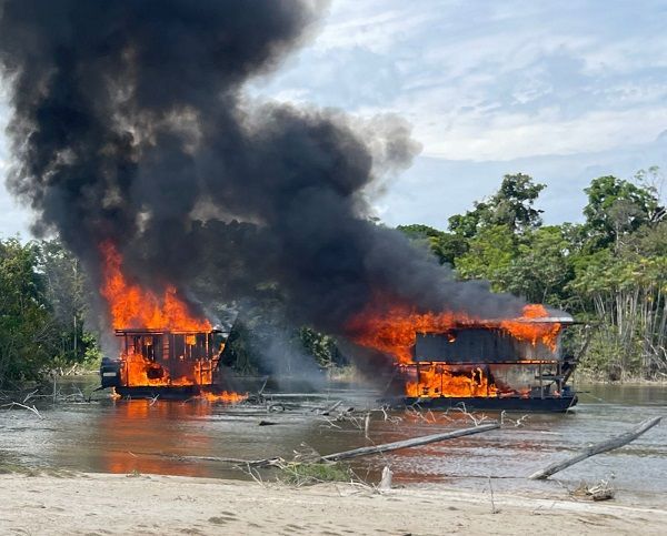 Agentes da Polícia Federal (PF) destruíram balsas e dragas que eram usadas na atividade de garimpo de ouro ilegal no município de Jutaí (a 750 km de Manaus).