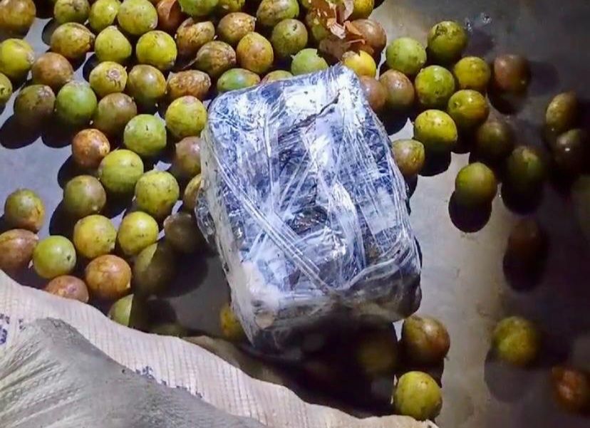 Durante o procedimento, os cães de faro narcótico da PMAM sinalizaram a suspeita de entorpecentes dentro de umas sacas de fibra. Ao terem aberto as encomendas, os policiais encontraram em meio a carga de tucumã, os seis tabletes de maconha do tipo skunk.