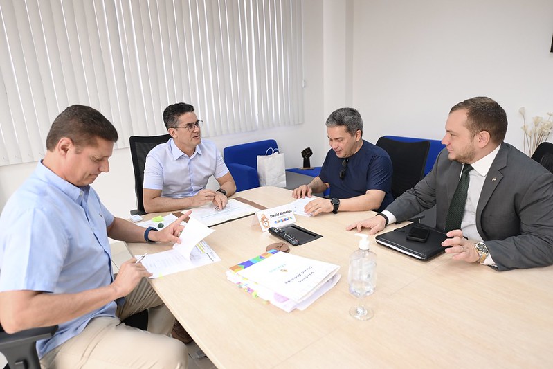 O prefeito de Manaus, David Almeida, ao lado do vice-prefeito e chefe da Casa Civil, Marcos Rotta, assinou, na manhã desta quarta-feira, 28/9, o decreto que institui a situação de emergência no município em virtude da vazante do rio Negro, que vem causando prejuízos as zonas ribeirinha e rural da cidade. O ato aconteceu no Centro de Cooperação da Cidade (CCC), localizado na zona Centro-Sul da capital.