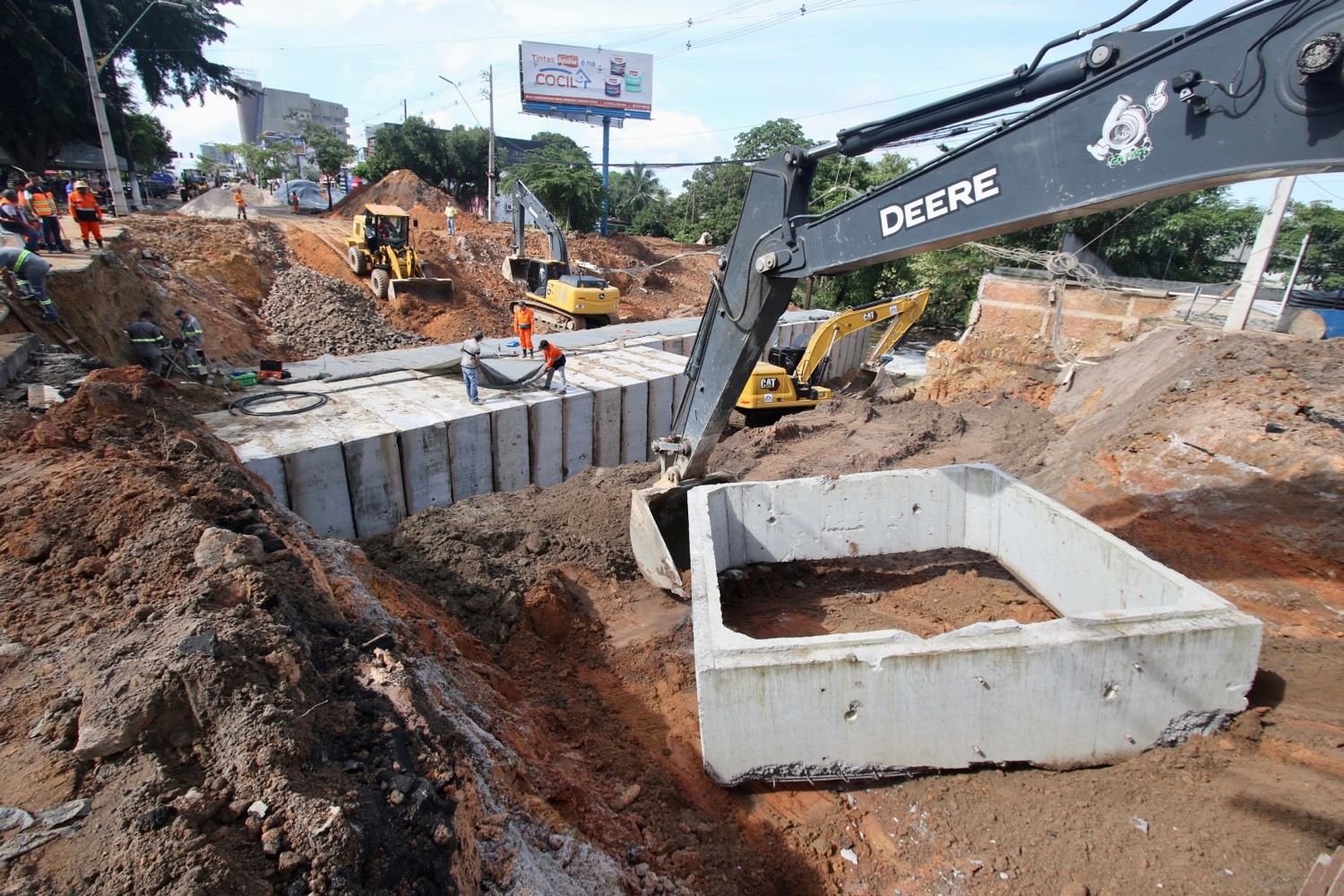 A Prefeitura de Manaus, por meio da Secretaria Municipal de Infraestrutura (Seminf), iniciou a implantação da segunda linha de tubulação com aduela de concreto no novo sistema de drenagem na avenida Djalma Batista. A intervenção acontece, neste sábado, 18/2, completando 72 horas de trabalhos ininterruptos no local.