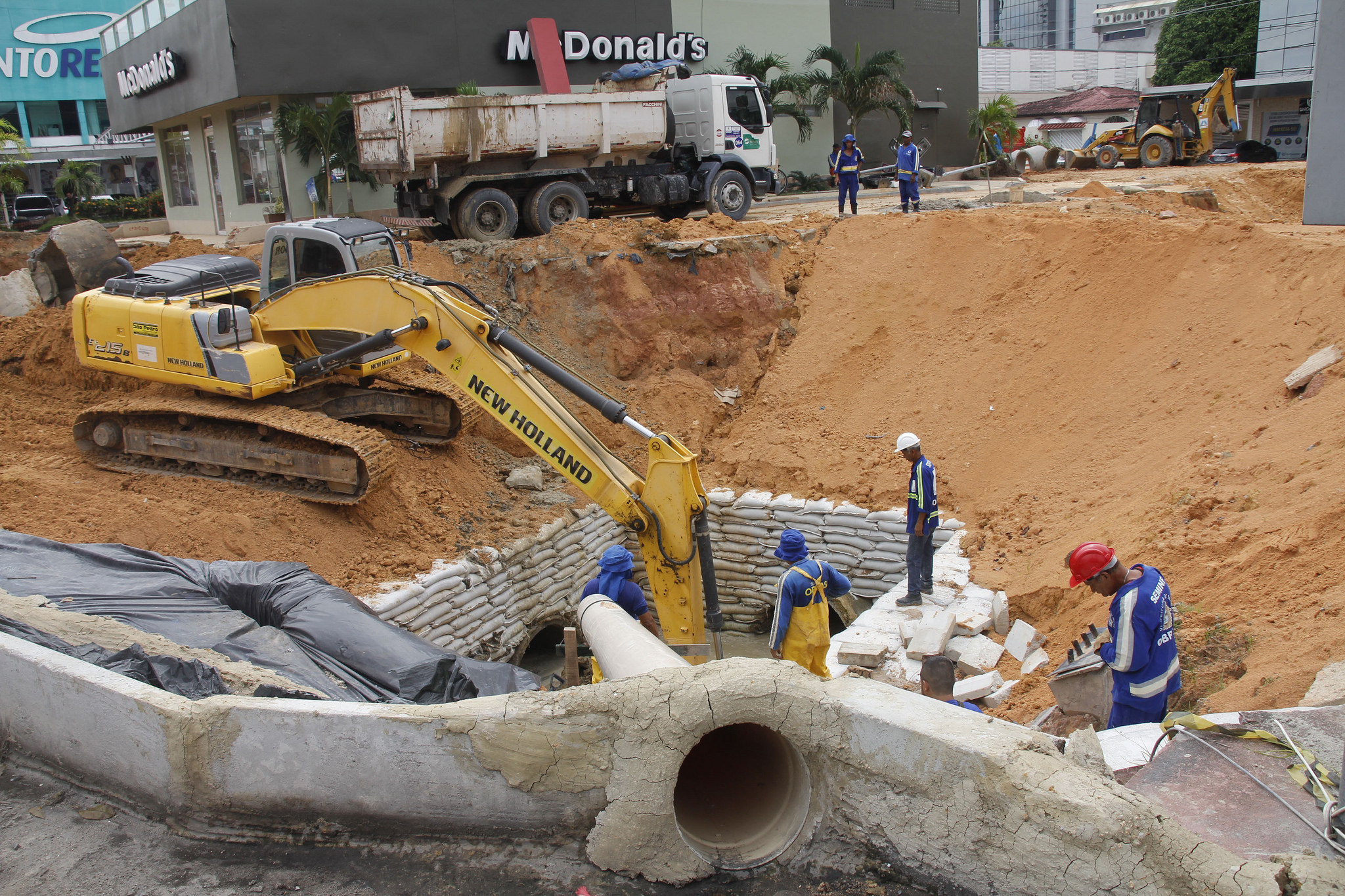 A primeira etapa da obra foi concluída no dia 21 de março, na qual foram feitos serviços de drenagem profunda, meio-fio, sarjeta, 27 metros de calçada e também foi implantado um “poço de visita”, que irá servir de acesso à rede de drenagem para futuras manutenções, sem a necessidade de interrupção do fluxo de veículos na avenida.