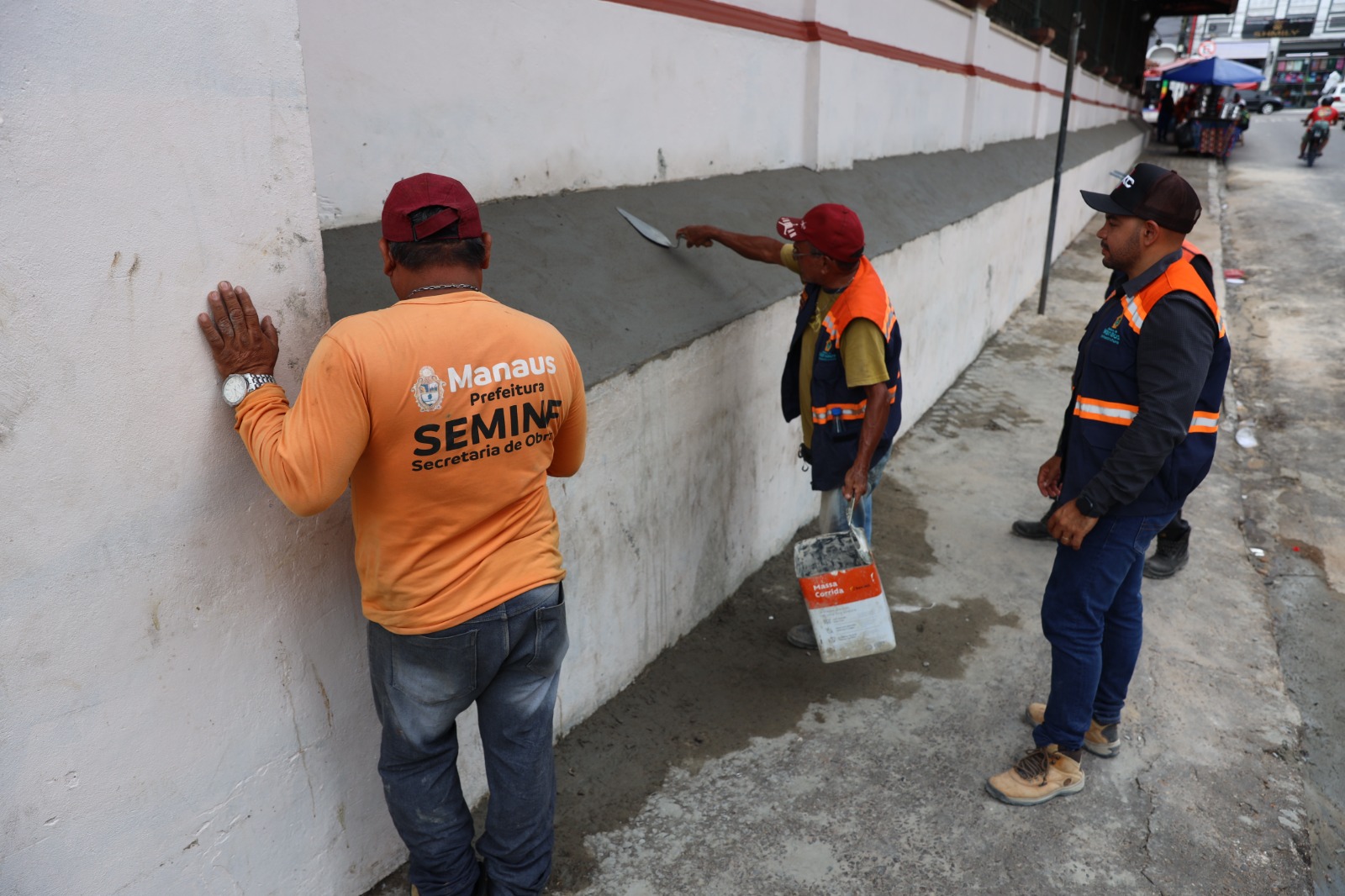 A Prefeitura de Manaus, por meio da Secretaria Municipal de Infraestrutura (Seminf), segue avançando nas melhorias de um dos maiores patrimônios históricos e culturais da capital, o mercado municipal Adolpho Lisboa, no Centro, zona Sul da cidade. Nesta sexta-feira, 19/9, as equipes executaram a complementação da contenção lateral do espaço, localizado na rua Tabelião Lessa, reforçando a estrutura com concreto para garantir segurança e preservação.