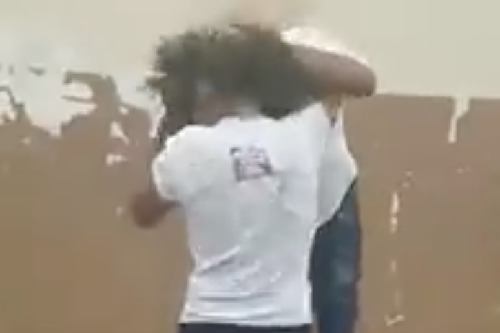 Nas imagens, a professora xinga a aluna que sorri debochadamente e diz que não sabia que o homem era casado. Outros alunos apoiam a professora e as amigas da garota agredida tentam tirar ela da gravata aplicada pela professora.